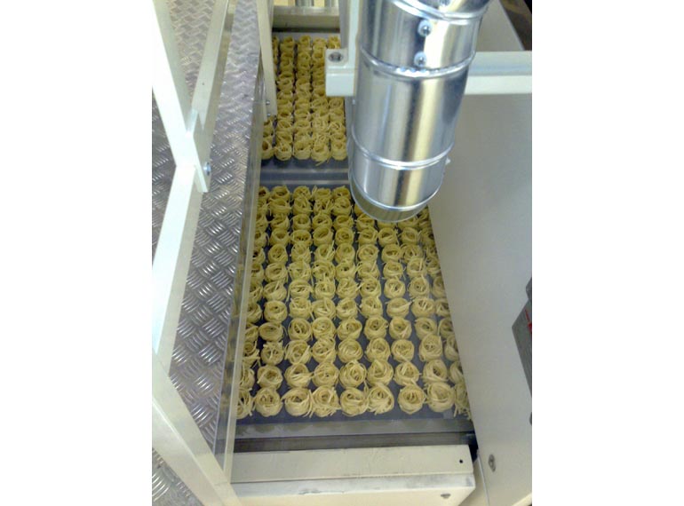 – Specjalna linia makaronu o wydajności od 200 kg / h do 1200 kg / h, nadaje się do wyjmowania makaronu o specjalnym kształcie na tackach, takich jak makarony gniazdka, lasagne, cannelloni i duże makarony o krótkim kształcie.