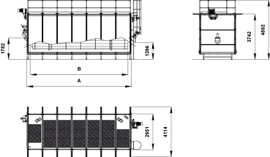 – Elektryczne wentylatory osiowe znajdują się w górnej części bębna i są wyposażone w specjalne silniki elektryczne odpowiednie do wysokich temperatur i aluminiowe łopatki do odlewania z wysokim przepływem powietrza.