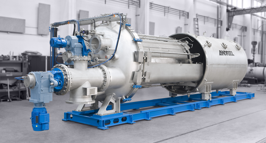 W szczególności w przypadku drobnoziarnistych, a zwłaszcza ultra drobnoziarnistych produktów, filtracja ciśnieniowa jest technologią z wyboru, aby osiągnąć zwiększoną określoną szybkość filtracji i wyższą jakość produktu. Filtr ciśnieniowy bębnowy Krauss-Maffei ma konstrukcję zamkniętą, która umożliwia przetwarzanie w atmosferze gazu obojętnego.