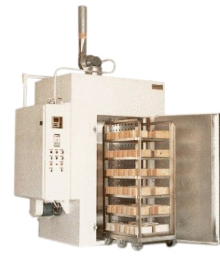 Dlaczego poziomy piec przepływowy a piec typu szarżowego? Głównym powodem jest przepływ powietrza. W piecu przepływowym zwykle mamy całą „ściankę”, która popycha powietrze, a przeciwległa „ścianka” ciągnie powietrze. Zazwyczaj jest to od lewej do prawej. W przypadku typu szarżowego nie ma jednolitego przepływu powietrza. Dzięki przepływowi uzyskujesz lepszą i bardziej równomierną dystrybucję ciepła. Standardowe rozmiary to 3 stopy x 3 stopy x 3 stopy i 4 stopy x 4 stopy x 4 stopy, ale mamy możliwość budowania ich w innych wymiarach według potrzeb.