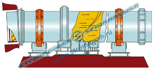 Gorące gazy paleniskowe nadchodzą do obudowy i zderzając się z materiałem nagrzewają jego, odparowując wilgoć, która mieści się w nim. Przekazanie ciepła zachodzi trzema głównymi sposobami: w stanie zważonym przy spadku materiału z łopatek, od gazów paleniskowych przez zewnętrzną powierzchnię leżącego w zaspach materiału, od bardziej nagrzanych części wewnętrznej konstrukcji bębnu i segmentu pierścieniowego.